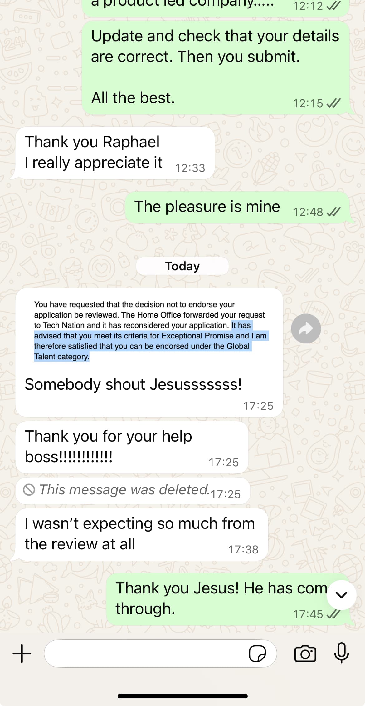 Seeing the endorsement email after two rejections was honestly powerful - especially because he didn’t even expect the review to go this far and guess what! He reached out to me from this platform. I and other experts are here for you, I encourage applicants to speak up and seek help.