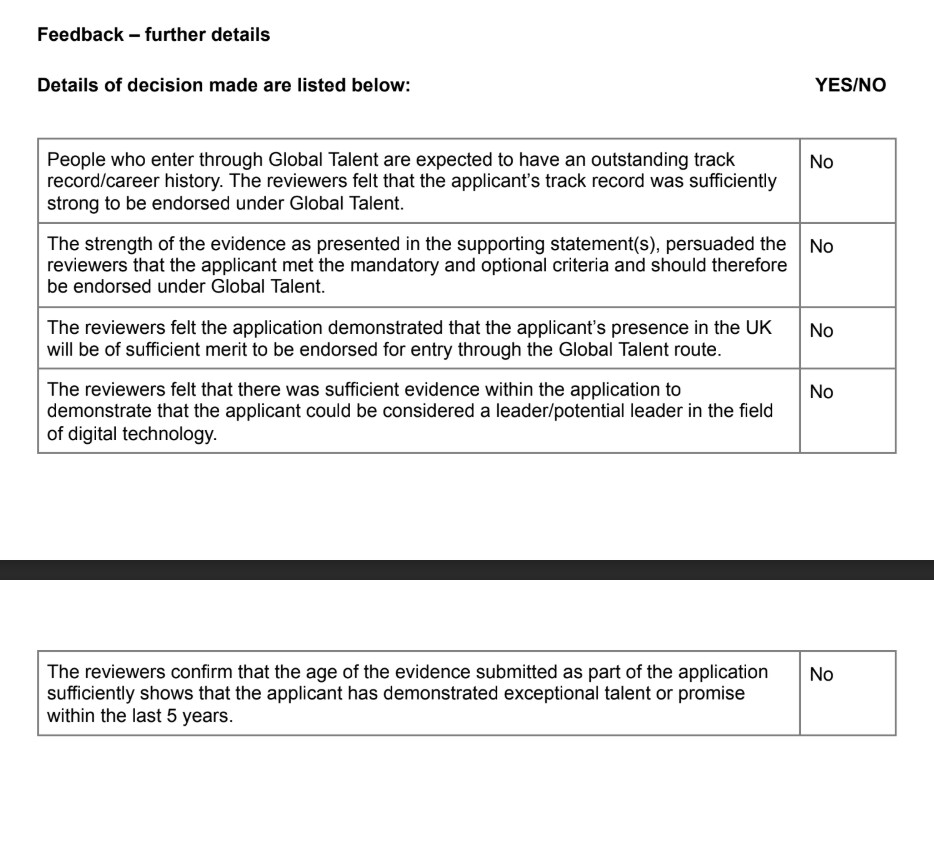 I’ve just received a rejection for my Global Talent Visa application under the Digital Technology Business Track (Product Marketing Manager). The reason cited was that I did not meet the Mandatory Criteria (MC).