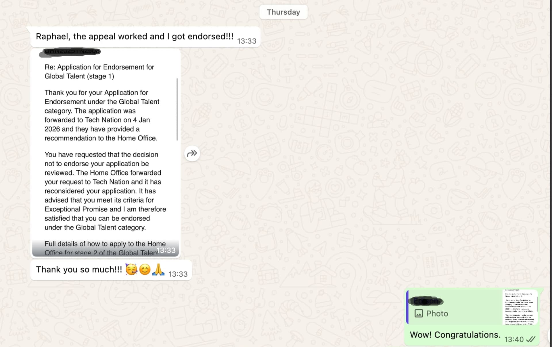 Raphael, the appeal worked and I got endorsed!!! — A message I received from an applicant I supported
